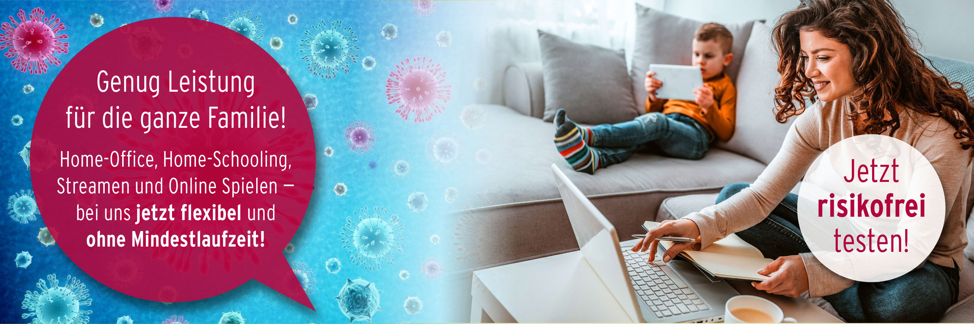 Mit unseren verschiedenen Produkten ermöglichen wir Euch schnelle und stabile Leistung für Home-Office, Home-Schooling, Chatten, Streamen und Online Spielen allein oder für die ganze Familie.