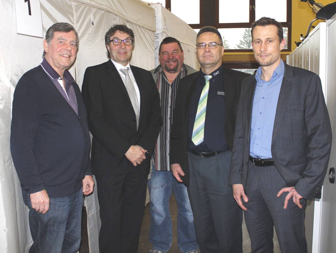 v. l. n. r. Werner Windt, OB Christof Florus, Ortsvorsteher Michael Schiel , Stadtwerkeleiter Paul Schreiner, Alexander Siebnich Foto: StVw