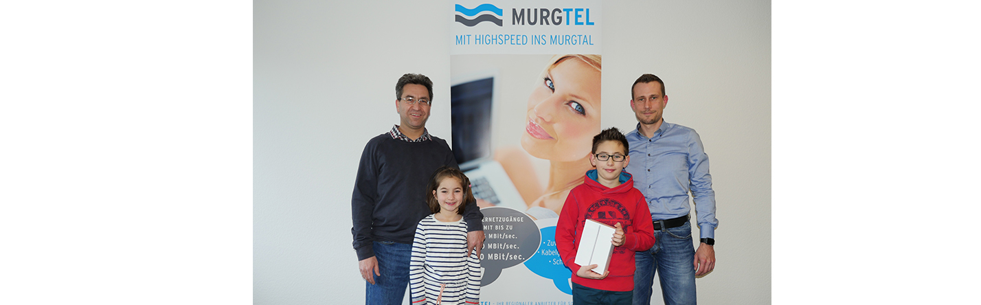 Die Freude war groß als Alexander Siebnich von MURGTEL Familie Bastian aus Michelbach das iPad mini 4 überreichte.